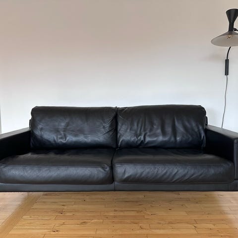 Kvalitets sofa i sort skind 212cm lang, meget flot og velholdt