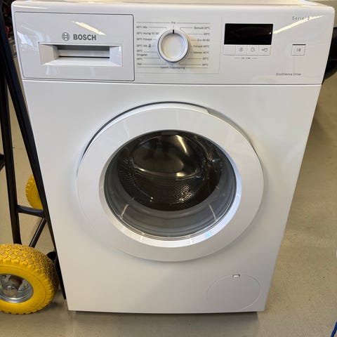 Bosch Exclusiv vaskemaskine, frontbetjent model i hvid. Maskinen har frontbetjent låge med rund glasluge og betjeningspanel øverst med drejeknap og display. Velegnet til almindelig tøjvask i husstande, hvor der ønskes en frontbetjent vaskemaskine fra Bosch. Yderligere tekniske specifikationer som kapacitet, energiklasse og mål er ikke oplyst.