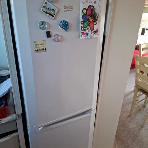 Beko køle-fryseskab i hvid. Skabet har flere glashylder i køledelen samt grøntsagsskuffer nederst. Frysedelen er placeret øverst bag separat låge. Mekanisk temperaturregulering indvendigt. Velegnet som almindeligt køle-fryseskab i køkken, bryggers eller sommerhus.