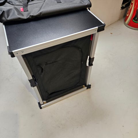 Nakano opbevaringstelt i blå og grå farve. Teltet er egnet til opbevaring af fx cykler, havemøbler eller andet udstyr, der skal stå i ly for vejr og vind. Fremstillet i vandafvisende materiale med lynlåsåbning på forsiden. Er kun brugt en sesong Leveres som telt og stænger uden yderligere tilbehør