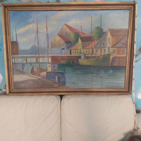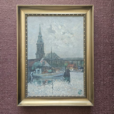 Velholdt Olie maleri af Frederiksholm Kanal med Christian 4 Bryghus