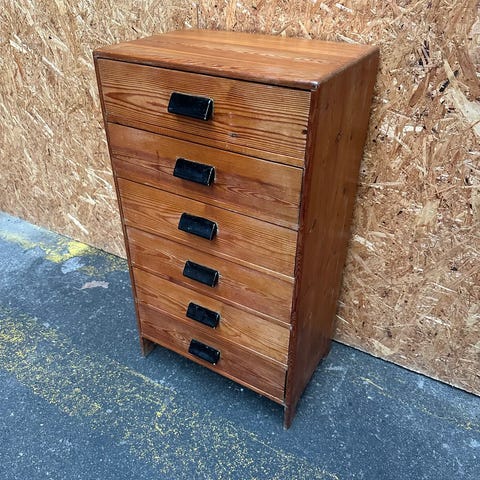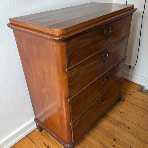 Entrekommode af lys tappet mahogni,med 3 skuffer,fritstående.