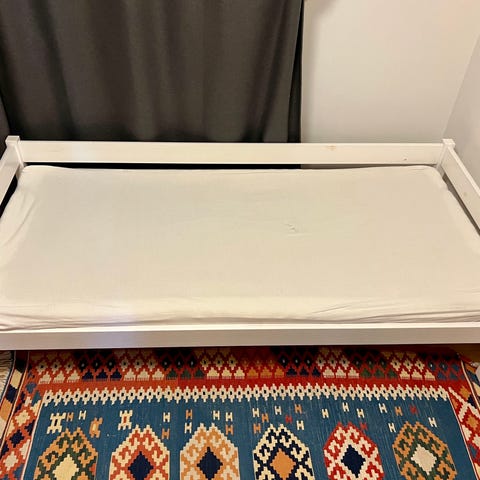 Madras kan medfølge for ekstra 500 kr. (nypris 1.000 kr.) og rullemadras for ekstra 100 kr. (nypris 550 kr.) og to stræklagener for ekstra 150 kr. (nypris 360 kr.)