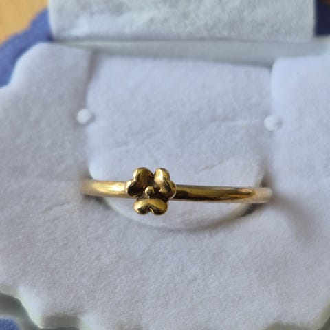 1 stk Spinning Jewelry guldring i 8 karat med to små blade. Stemplet 333 og størrelse xxs / 49.
