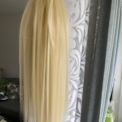 GM paryk i mellembrun nuance, glat, lang. Parykken leveres sammen med tilhørende GM plejeprodukter og helt nyt Remington keratin glattejern (brugt 1 gang), der kan reguleres i temperatur. Velegnet til daglig brug eller som ekstra hårdel, hvor der ønskes et naturligt udtryk. 70% ægte hår, der kan styles med glattejern. Brugt få gange. Nypris 9.000 kr.