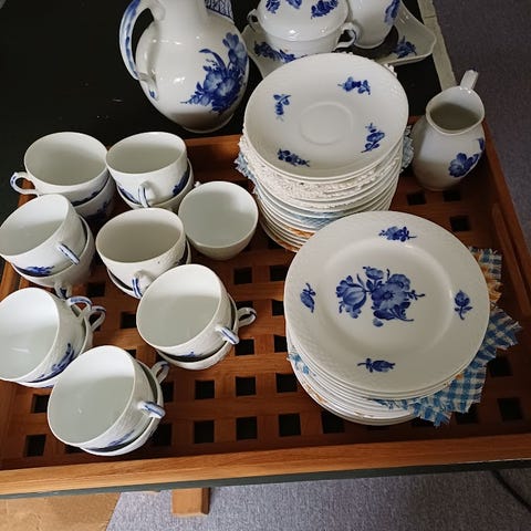 Royal Copenhagen Blåt porcelæn kaffestel kopper og tallerkener blå-hvid