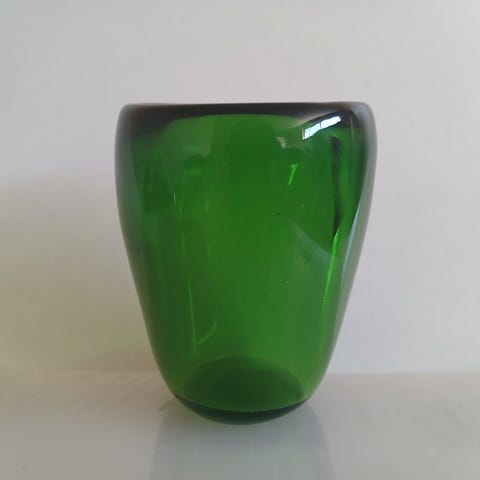 Fin vase i grønt mundblæst glas - sandsynligvis svensk glaskunst fra -60'erne. Ingen skår.