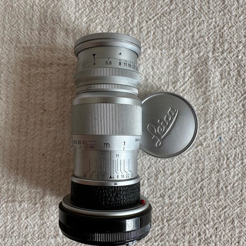 Leica Elmar teleobjektiv 9cm f/4 sølv