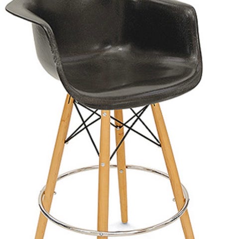 Barstol "JONSTRUP" fra Jysk. Siddehøjde 78 cm. Sort kunstlæder og metal. Natur egefarve.