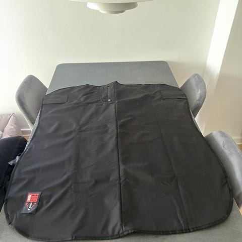 LeMieux dressursadelovertræk i sort. Overtrækket er formet til dressursadel og har elastisk kant for at slutte tæt om sadlen. Ydersiden er i glat, slidstærkt materiale, mens indersiden er blød for at beskytte sadlen mod ridser og støv. Velegnet til rideturen i vådt vejr.