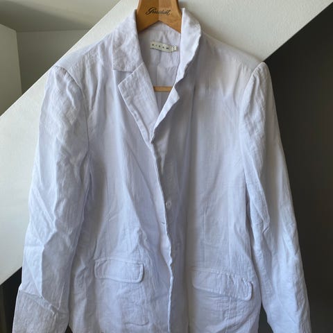 Buksedragt Bison Woman. Skjortebluse og bukser i Str. 38. Materiale ikke angivet. LIDT brugt og derfor som ny. BLUSE: midt bag 63 cm, bryst 106 cm, ærme 59 cm incl. 8 cm manchet.