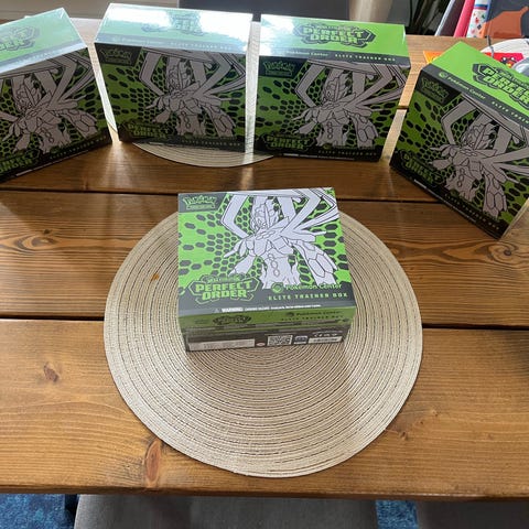 Jeg har 4 Ascended Heroes Elite Trainer Boxes med rips i folie som jeg sælger. Jeg har vedhæftet den med største rip. De andre har en del mindre rips, kan sagtens sende billeder, bare skriv DM.