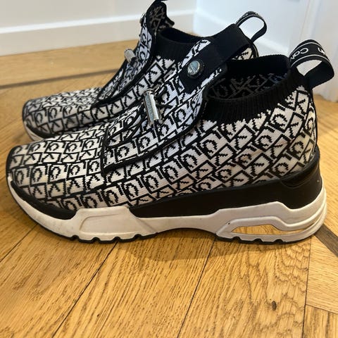Calvin Klein sneakers i str. 37. Modellen er i sort med hvid sål og stort CK-logo på siden. Ydersålen er i gummi med Calvin Klein Jeans-logo. Velegnet som hverdagssko eller fritidssko.