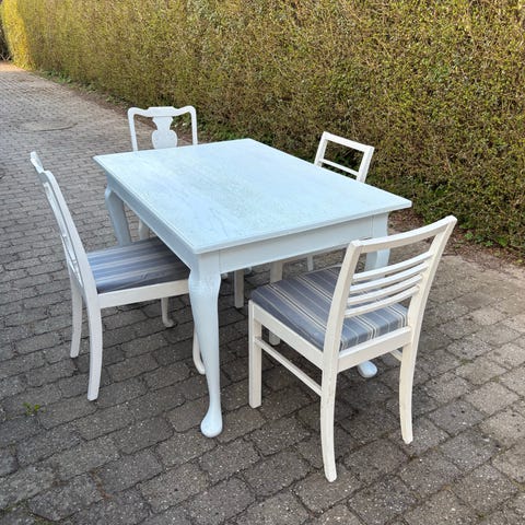 Bordet fremstår i god vintagestand, og der er god plads til 4 personer omkring bordet.