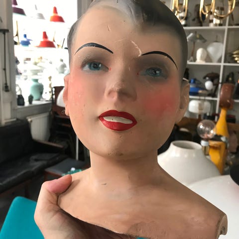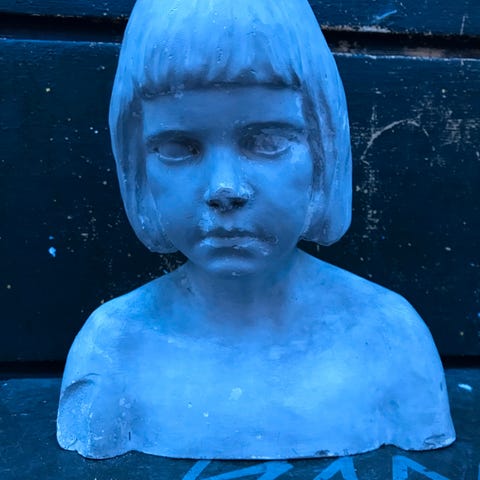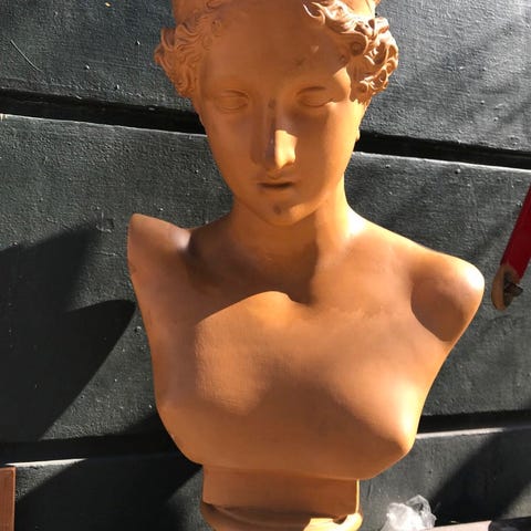 Buste af fransk bondepige, 46 cm høj gipsbuste af fransk bondepige med kyse. Kopi af fransk kunstner, Grinam Niam’s, ‘French Girl with Bonnet’. Fremstår som fin og uden skader.