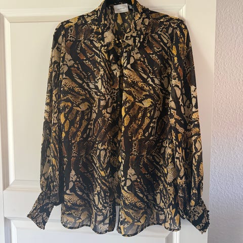 Lækker selskabskjorte med mønster af remme og kæder. Kvalitet som ikke krøller. Er brugt 2 gange