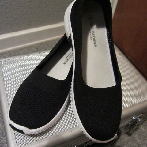 Nye bløde og varme hjemmesko i et strikket mønster med skridsikker sål, Kan vaskes i vaskemaskinen, og er lette at tage med i farten.