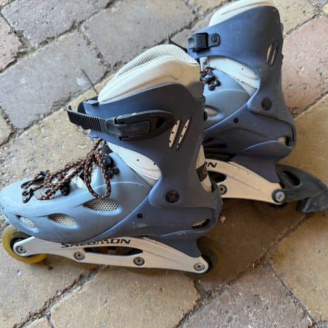 De har de sædvanlige brugsspor på plastikken og lidt slidt på hjul og bremseklods (se billeder), men teknisk fejler de intet.