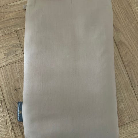 Vasket , men aldrig brugt. Beige farvet.