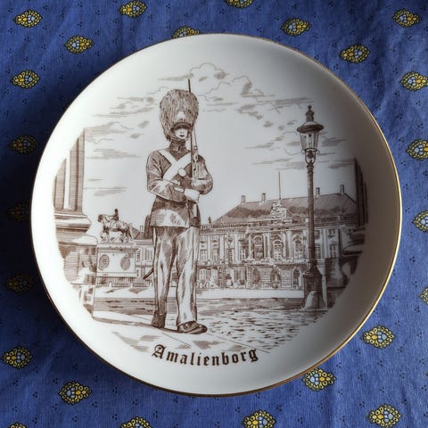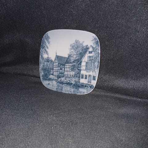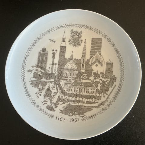 B&G porcelænsplatte Malmö Stads Vapen blå hvid