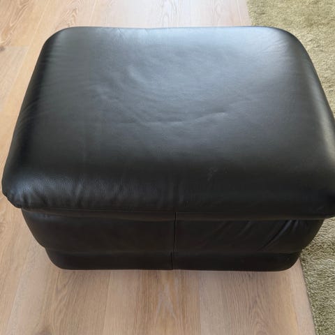 Sort læder puf fra Hurup Møbelfabrik.