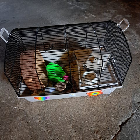 - Forskelligt udstyr i form af hus, tunnel, trappe mv. Huset har lidt afgnavet ben, men uden betydning for funktion.