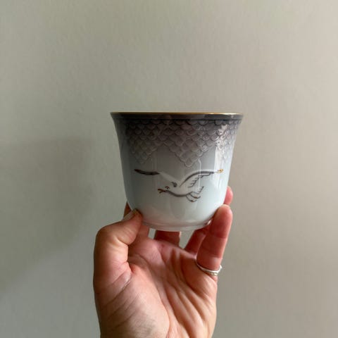 Detaljer: Alle krus er med den smukke, intakte guldkant og det ikoniske motiv med to måger.