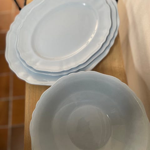 Design: Tallerkenen har en karakteristisk bølget/skalopslebet kant.