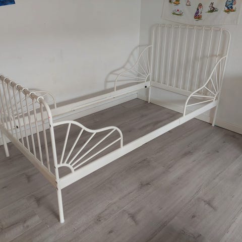 - Seng https://www.ikea.com/dk/da/p/minnen-stel-til-udtraeksseng-med-lamelbund-hvid-s29123958/#content