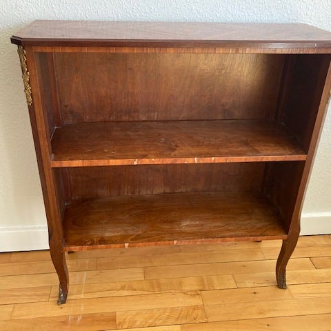 Rigtig fin klassisk reol på hjul. Reolen er malet beige.