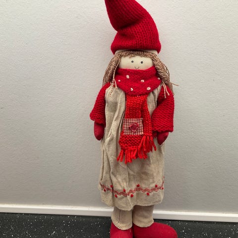 Keramik Nisse pige med lys, det er til batterier - 25 cm høj