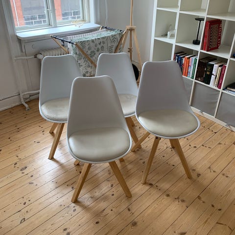 Hvid Ikea stol med træben. Den står som ny med meget få skrammer som ikke ses tydeligt.