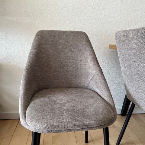 Vær opmærksom på, at der er en variation på stolebenene. To af dem er udelukkende træ. Og fire af dem er med metal. Se billederne.