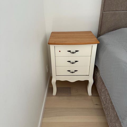 Flot hvidmalet gammel fyrretræs-servante/toiletmøbel med originalt gammelt spejl sælges.