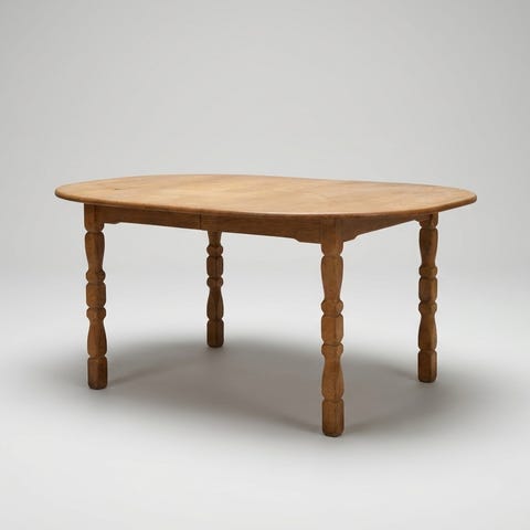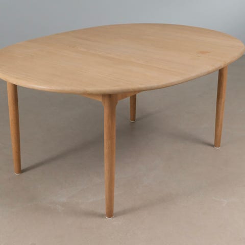 Klassisk ovalt spisebord fra Gudme Møbelfabrik i massiv egetræ – inkl. 2 tillægsplader.