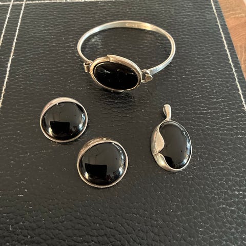Alle dele er i ægte 925 sølv og med naturlig sort onyx sten.