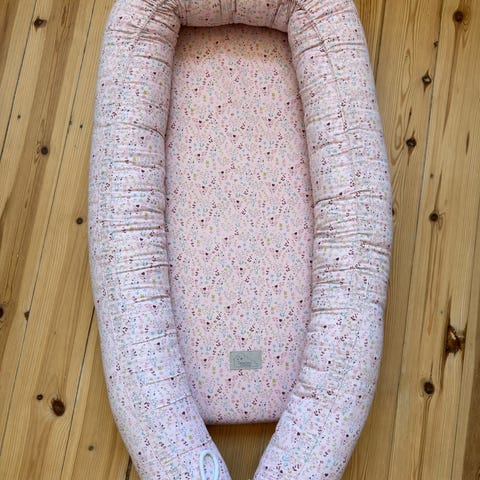 Flot og velholdt babynest i printet berries. Ingen pletter. Brugt i 5 måneder. Købt i 2025. Kvittering haves
