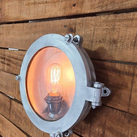 Væglampe, Tjek lige denne antikke/retro skibslampe I maghoni