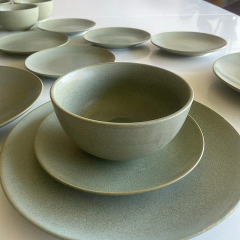 Sælger mine flotte grønne tallerkener sæt .4 stk flade 4 stk dyppe