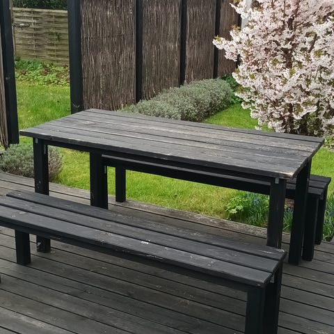 Bordet er to år gammel - det er behandlet med sort træpleje og det har stået inde om vinteren.