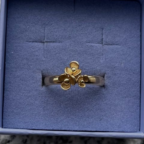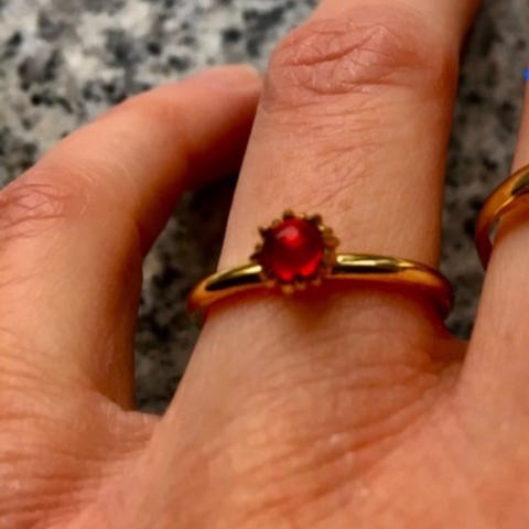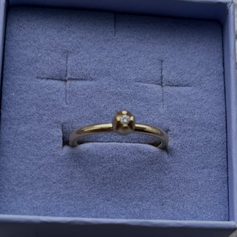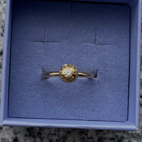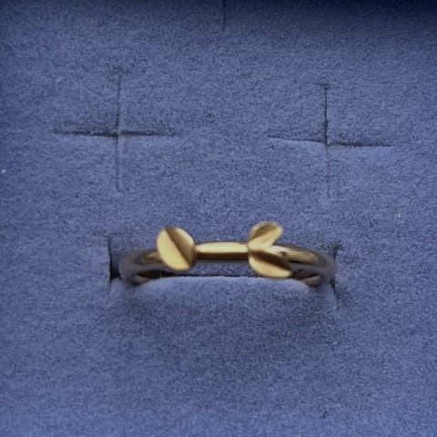 1 stk Spinning Jewelry guldring i 8 karat stemplet 333. Ringen er den tykke model og størrelse xxs / 49. Ringen er mønstret med udskårne blade.
