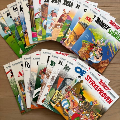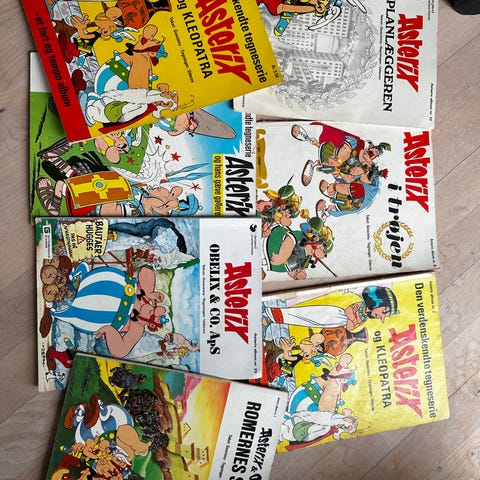 4 komplette samlinger med forskellige Asterix tegneserier stk pris 150 kr.