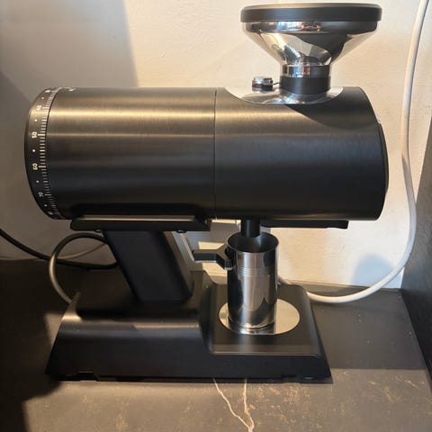 Fin doserless Mazzer Major Electronic med blæser. Den har netop får monteret nye 83mm. flade long life knive og en ny hopper. Anden maskine eller kværn kan indgå i handlen.