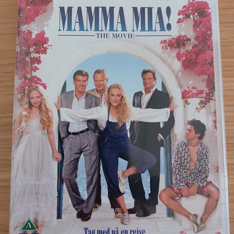 Mamma Mia The Movie dvd. Musikalsk spillefilm udgivet på dvd med originalt filmcover. Disken indeholder selve filmen i spillefilmslængde. Egnet til afspilning på standard dvd‑afspillere, computere med dvd‑drev og lignende udstyr, der understøtter dvd‑formatet.