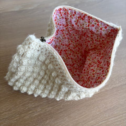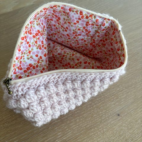 Kosmetiktaske/toilettaske i “teddy bear stof med ferskner”