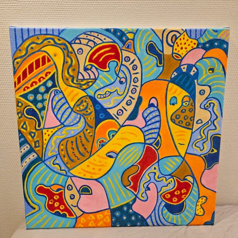 Akrylmaleri, Pia Ville Hansen, motiv: klovn - "nobody's perfect", b: 30cm h: 30 cm,