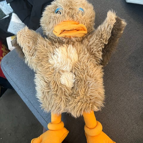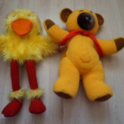 Bamse, kylling og ælling hånddukker. Har lidt brugsspor på Ælling og kyllimgs øjne. (se billeder). Fra røg- og dyrefrit hjem.