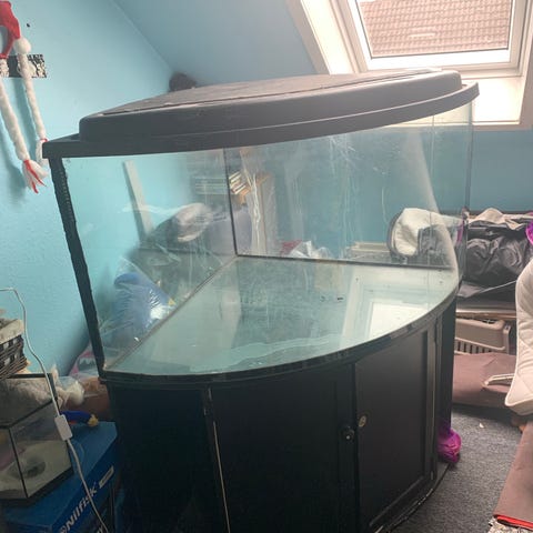 JUVEL Akvarium hjørneakvarium med hvidt skab