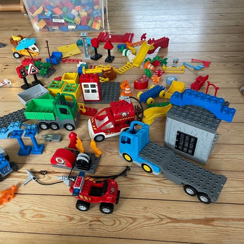 Stor lego duplo pakke masser af tog skinner der er 3 elektriske tog som virker.