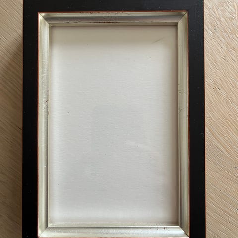 Smuk kvalitetsramme med hvid/guldkant, passepartout og rigtigt glas. Sort plys på bagsiden. Fra Max Studio - Home. Passer til billeder/fotos i str. 10x15 cm. Selve rammen måler 13,5 x 18,5 cm. Fra ikke-ryger hjem.